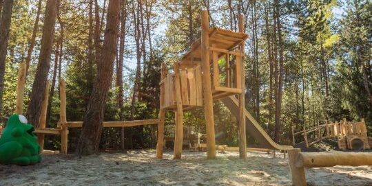 Onze camping heeft een geweldige natuurspeeltuin waar zowel grote als kleine kinderen kunnen spelen, klimmen en glijden. Het is een veilige en inspirerende omgeving met diverse speeltoestellen zoals klimrekken, glijbanen en schommels. Ontdek de plezierige speelervaring in onze natuurspeeltuin te midden van de prachtige natuurlijke omgeving.